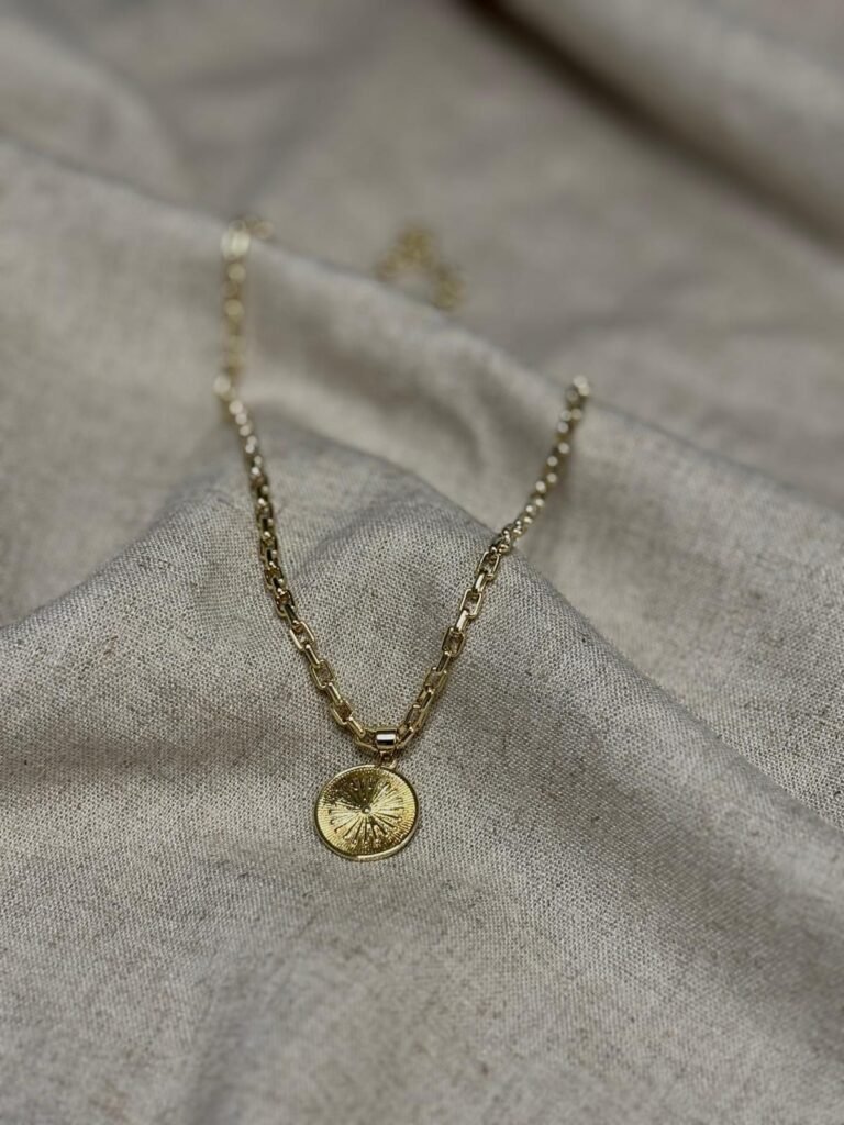 The Soleil Necklace, made from gold filled chain and a gold filled sun pendant. Necklace is $60
