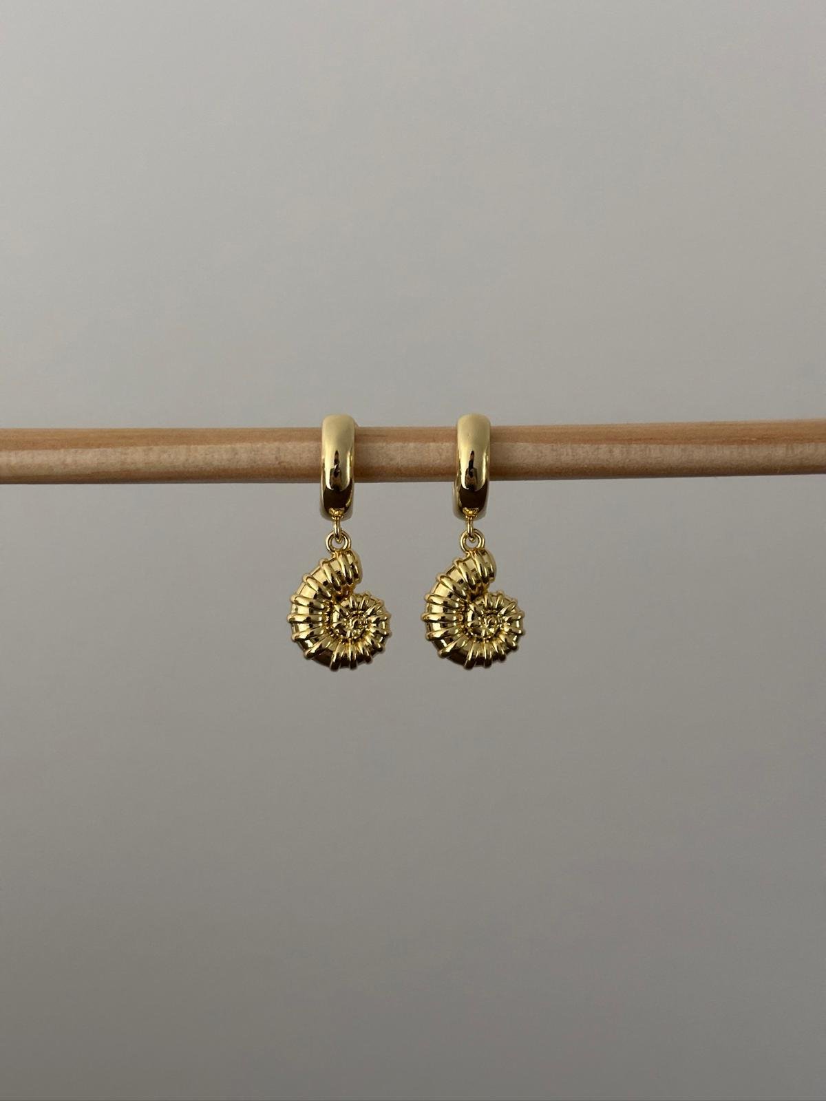 Gold filled huggie hoops with ammonite pendants
