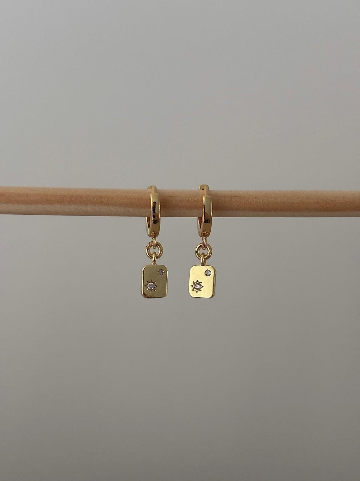 Celestial Earrings. Gold filled huggies, gold filled celestial pendants.